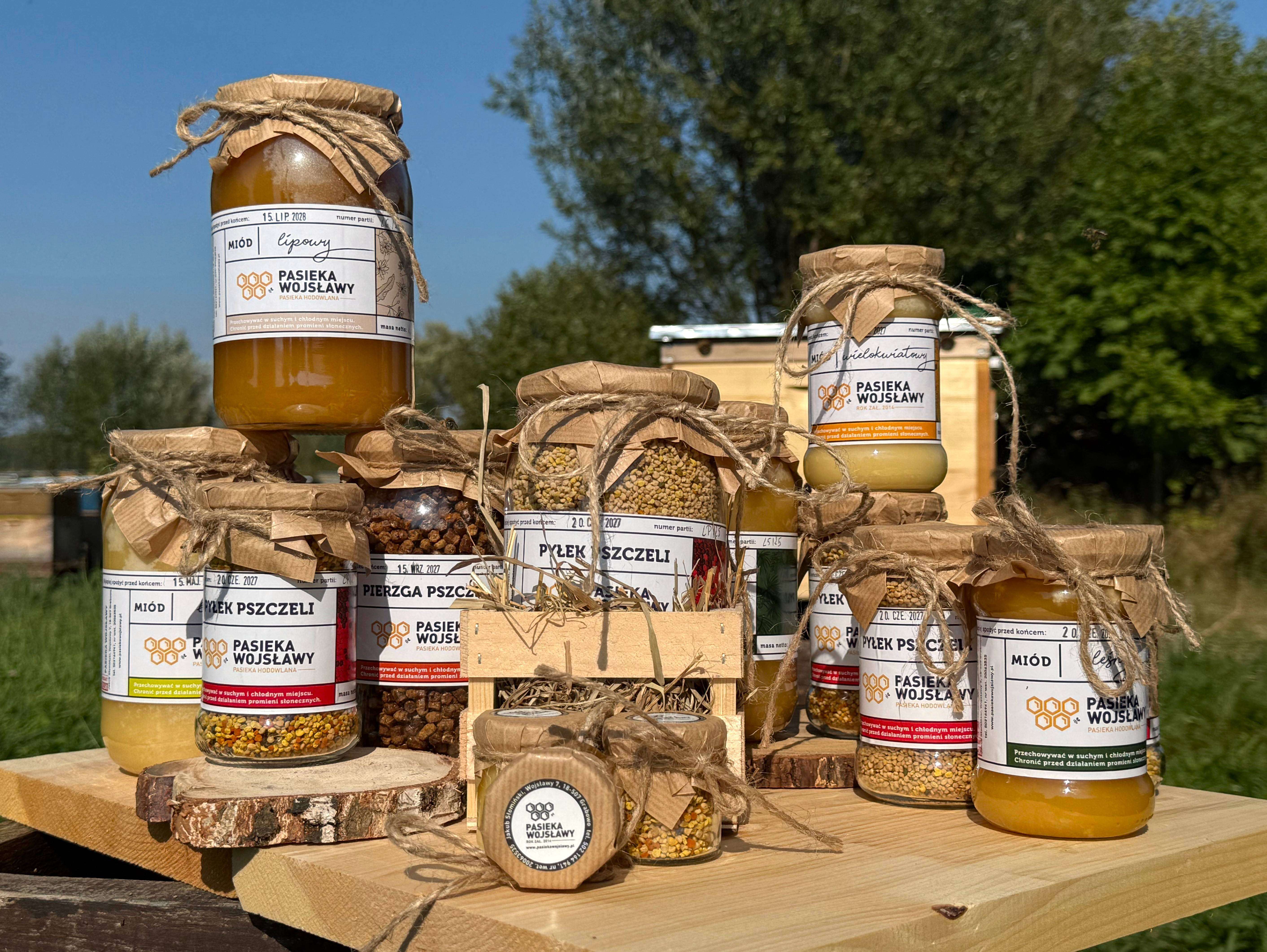Produkty z Pasieki Wojsławy takie jak miody odmianowe, pyłek, pierzgę, propolis i wosk można kupić stacjonarnie, telefonicznie, na festynach i wydarzeniach regionalnych.