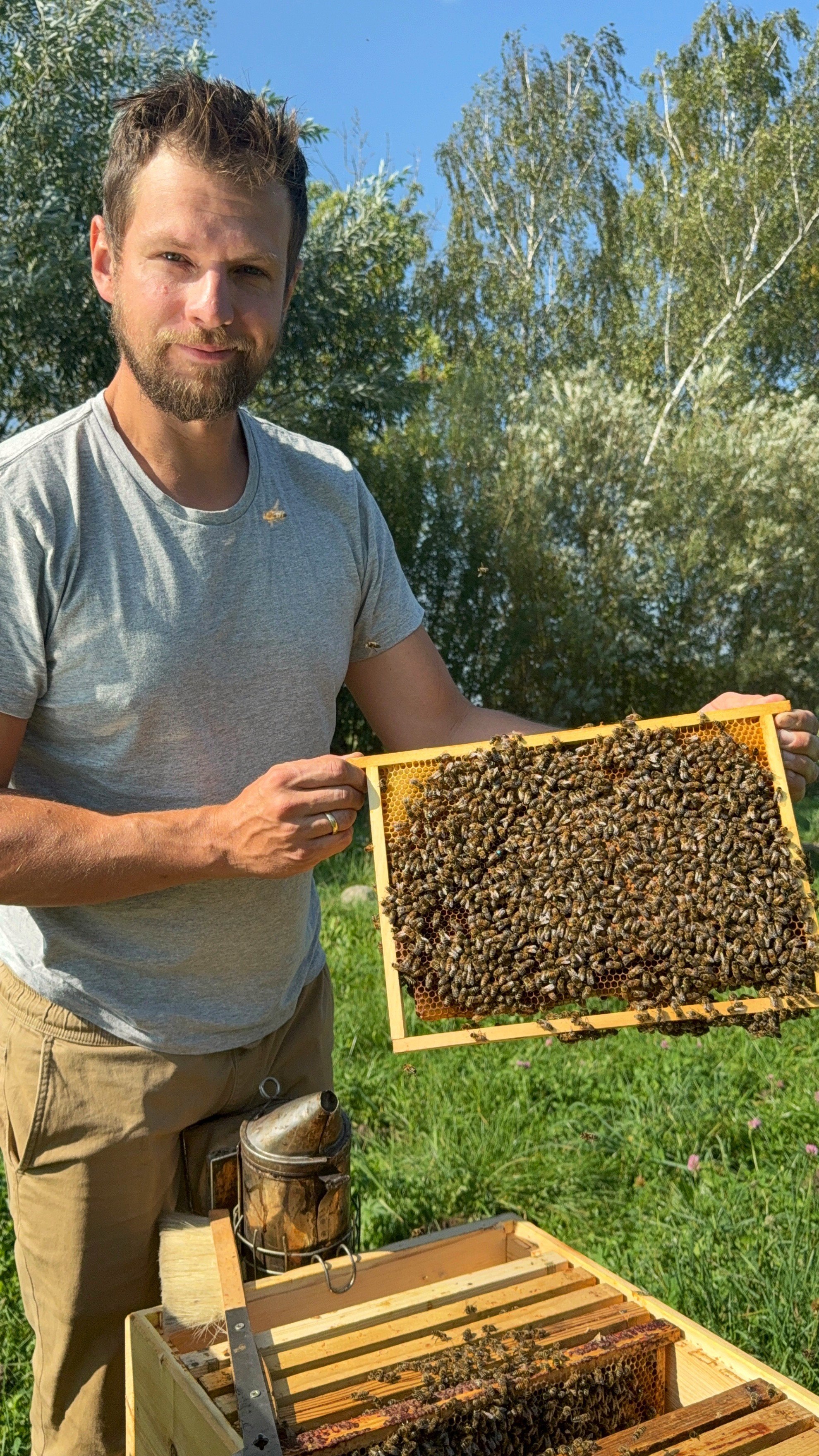 Od roku 2013 pszczoły stały się stałym elementem życia Pana Jakuba i jego żony Justyny. Początkowo było to hobby, z czasem – coraz poważniejsza działalność. Pierwsze lata były próbą sił, nauką i poszukiwaniem własnego sposobu pracy. Z czasem pasieka przekształciła się w gospodarstwo towarowe, a następnie – w hodowlane.